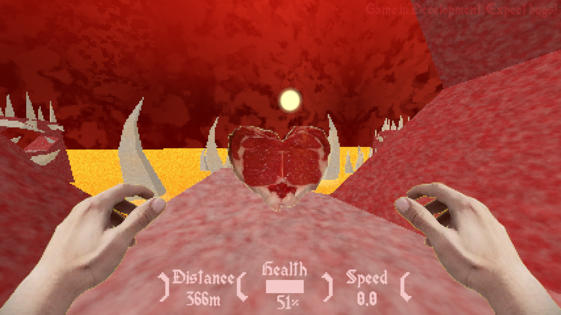 A surreal bunnyhop through a pulsating, infinite meatscape.